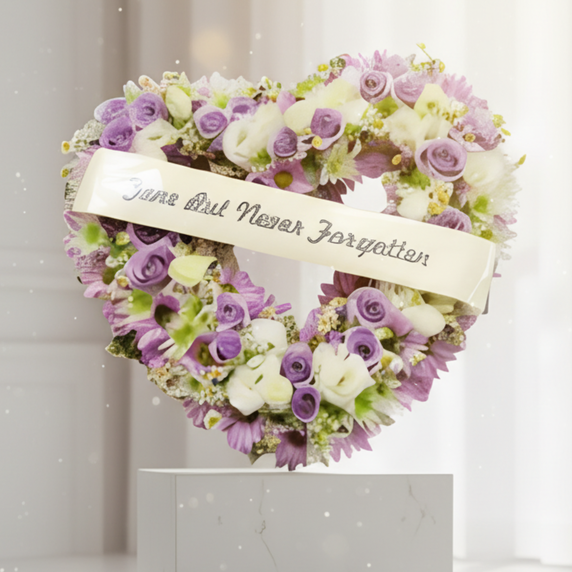 格蘭花店 - 心型花圈 (玫瑰、桔梗、小菊、菊花及其他襯花) [FHW005] 喪禮 殯儀 告別式 追思會