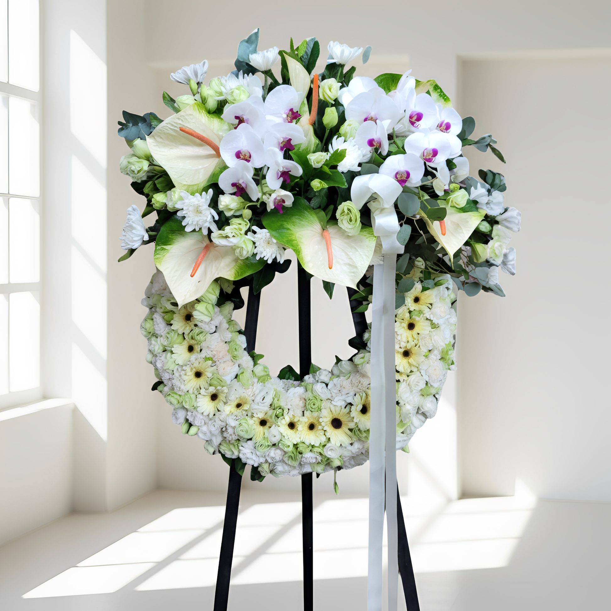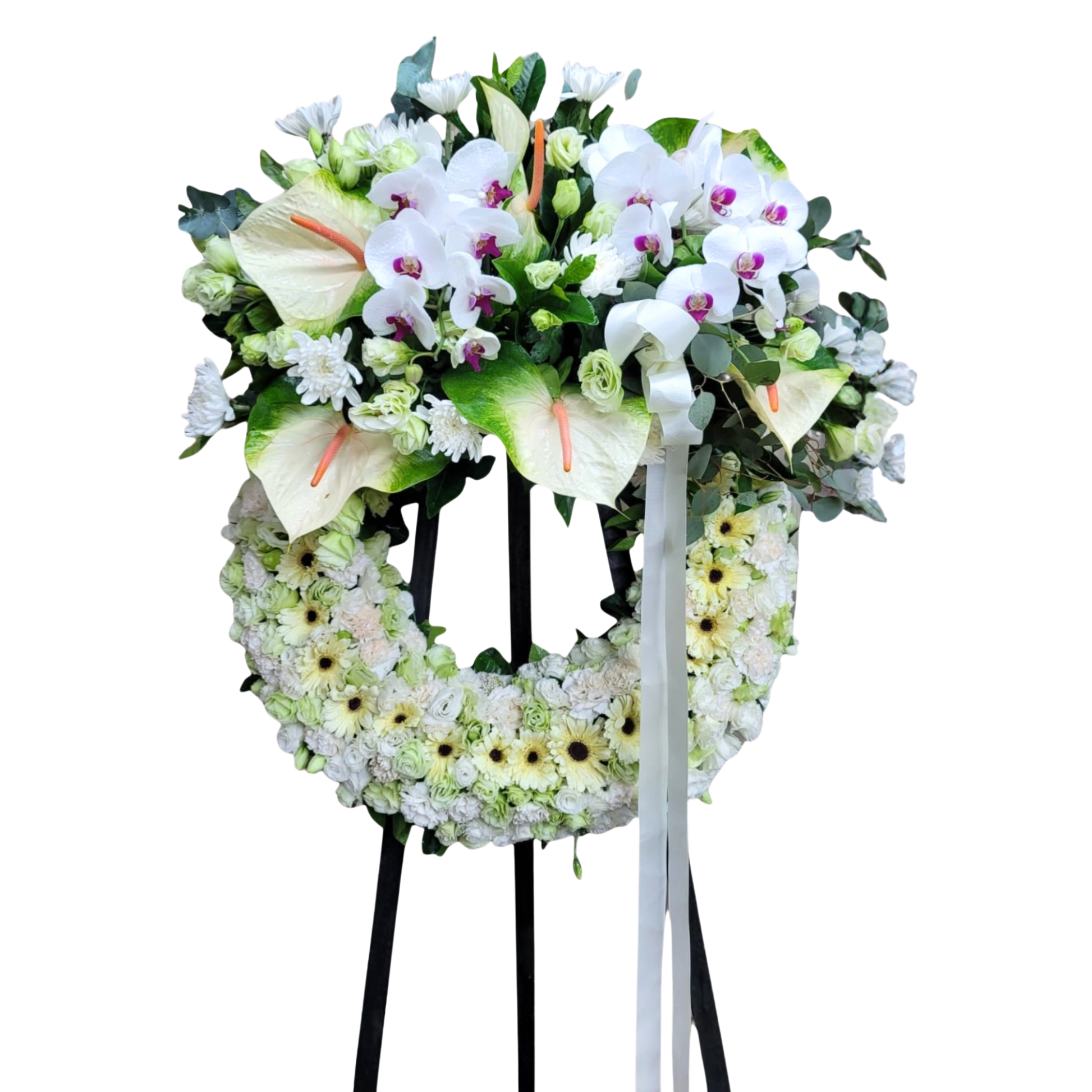 格蘭花店 - 白事花圈 (康乃馨、桔梗、太陽花、菊花、蝴蝶蘭、綠掌及其他襯花) [FW030] 喪禮 殯儀 告別式 追思會
