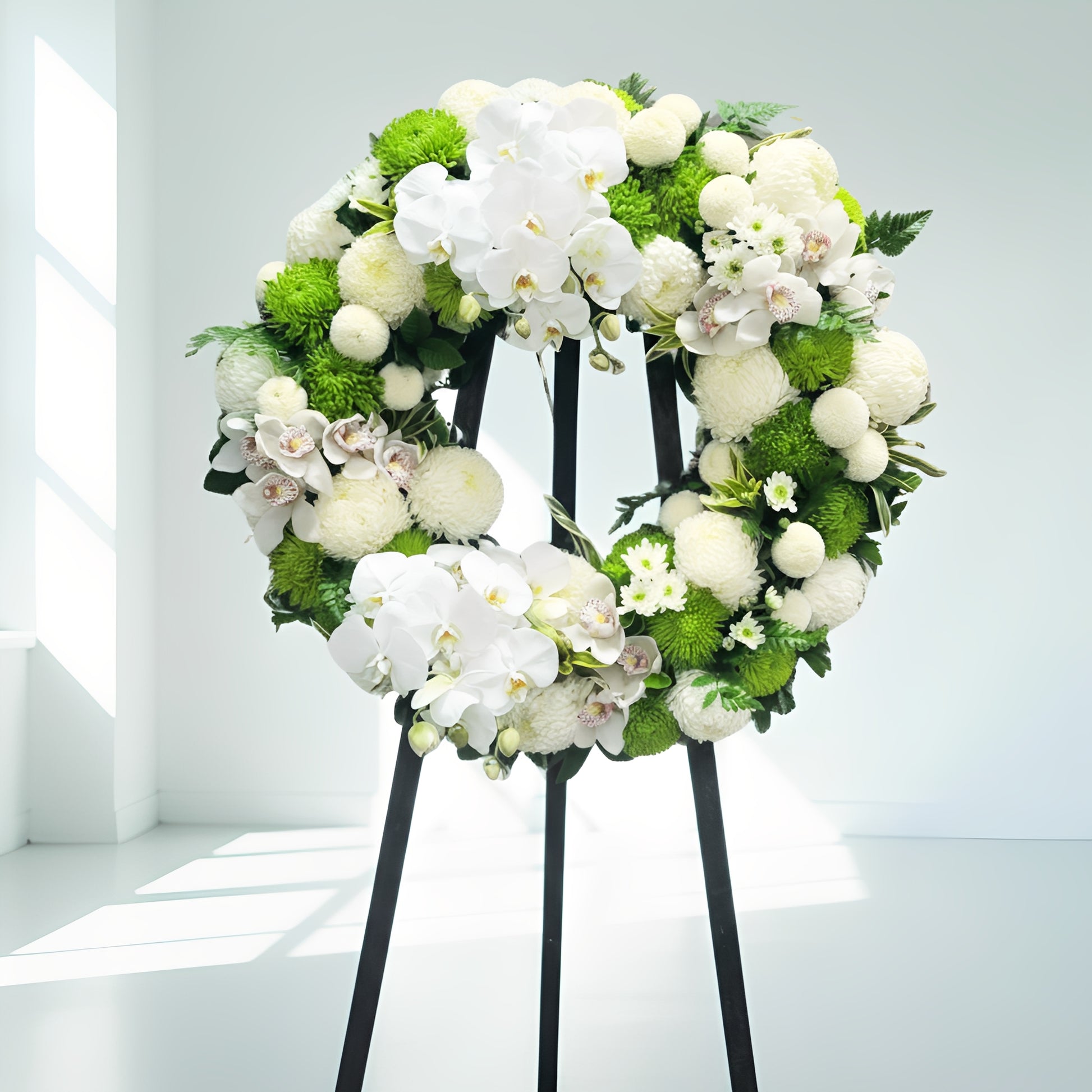 格蘭花店 - 白事花圈 (玫瑰、桔梗、乒乓菊、西施菊、大波菊、蝴蝶蘭及其他襯花) [FW035] 喪禮 殯儀 告別式 追思會