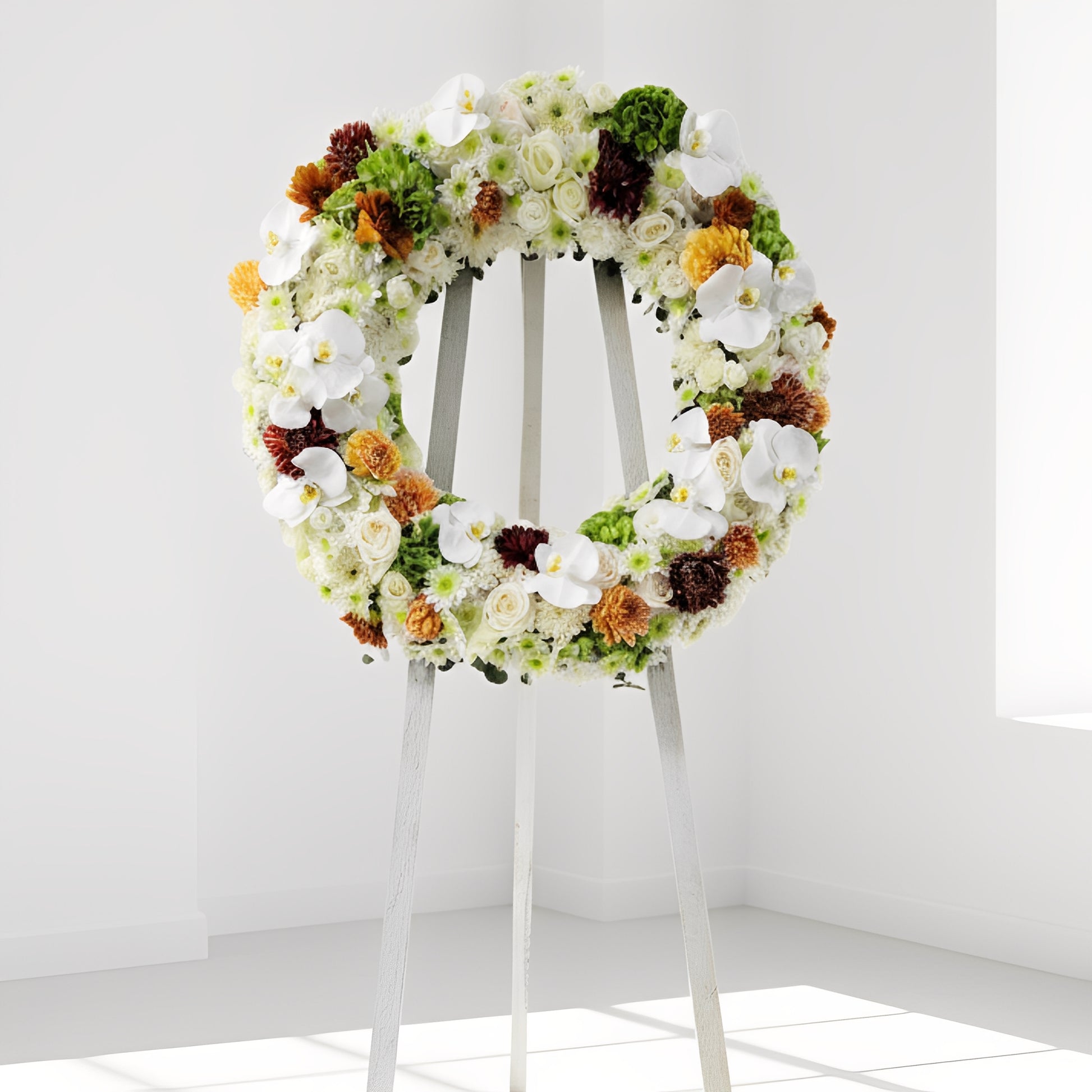 格蘭花店 - 白事花圈 (玫瑰、桔梗、大理花、小菊、菊花、蝴蝶蘭、繡球花及其他襯花) [FW027] 喪禮 殯儀 告別式 追思會