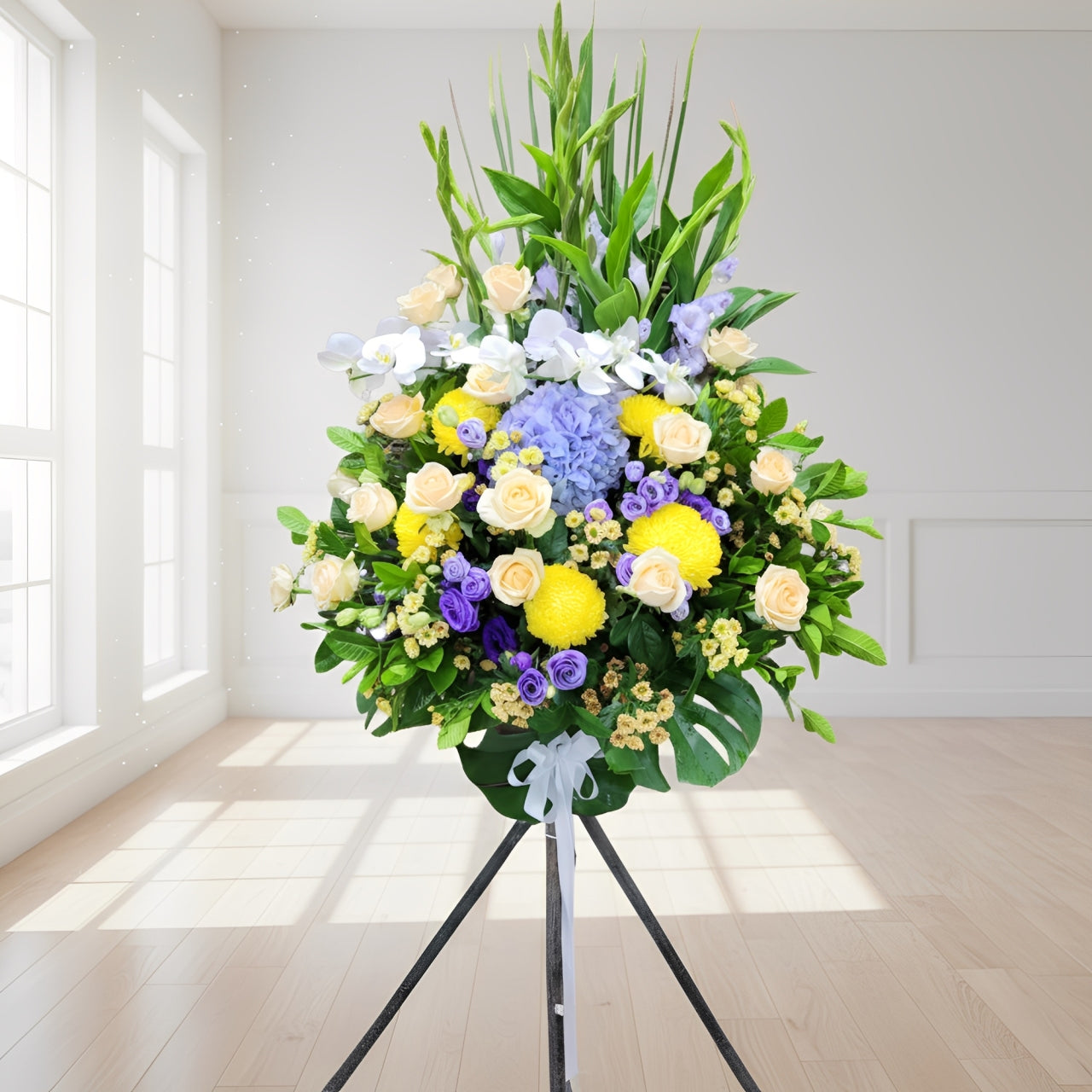 格蘭花店 - 白事花籃 (水竹草、劍蘭、繡球花、蝴蝶蘭、牡丹菊、玫瑰、桔梗、小菊及襯花) [FS0017] 喪禮 殯儀 告別式 追思會