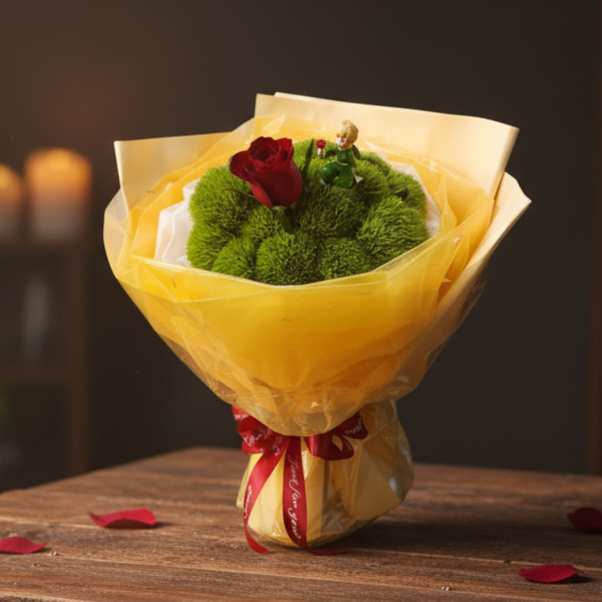 產品素材:綠毛球、玫瑰