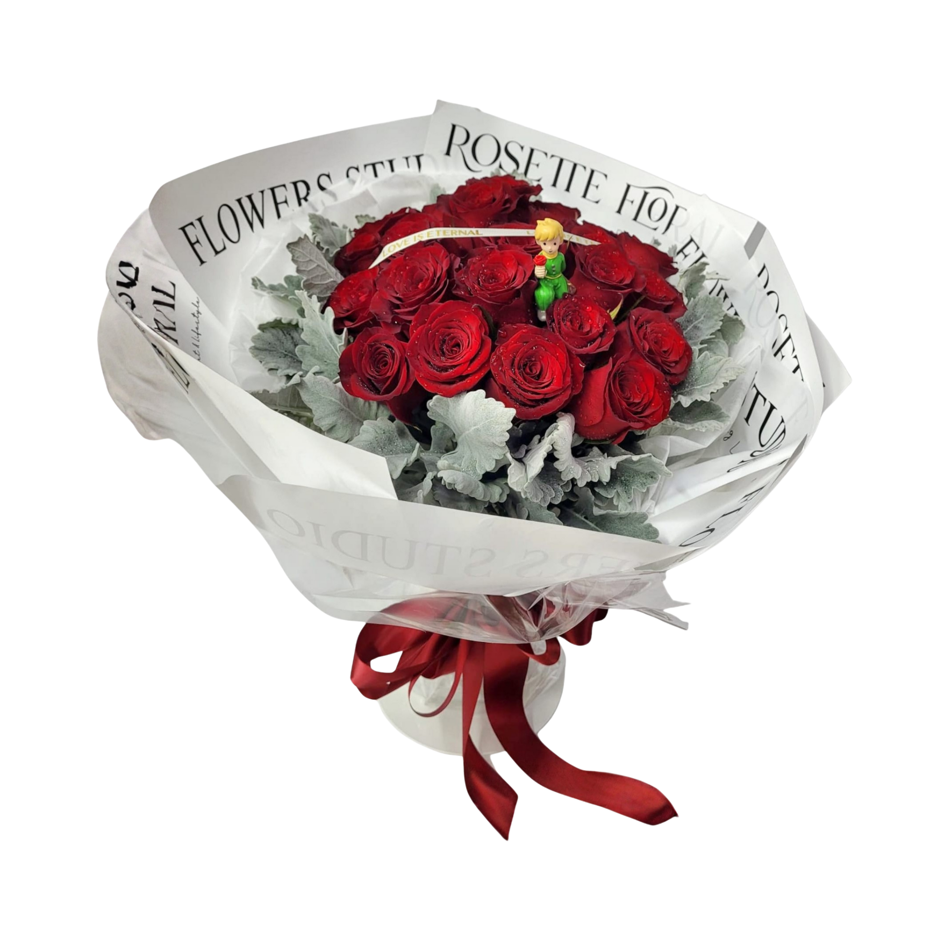 格蘭花店 - 鮮花花束 (玫瑰24枝、米娜葉) [FB060]