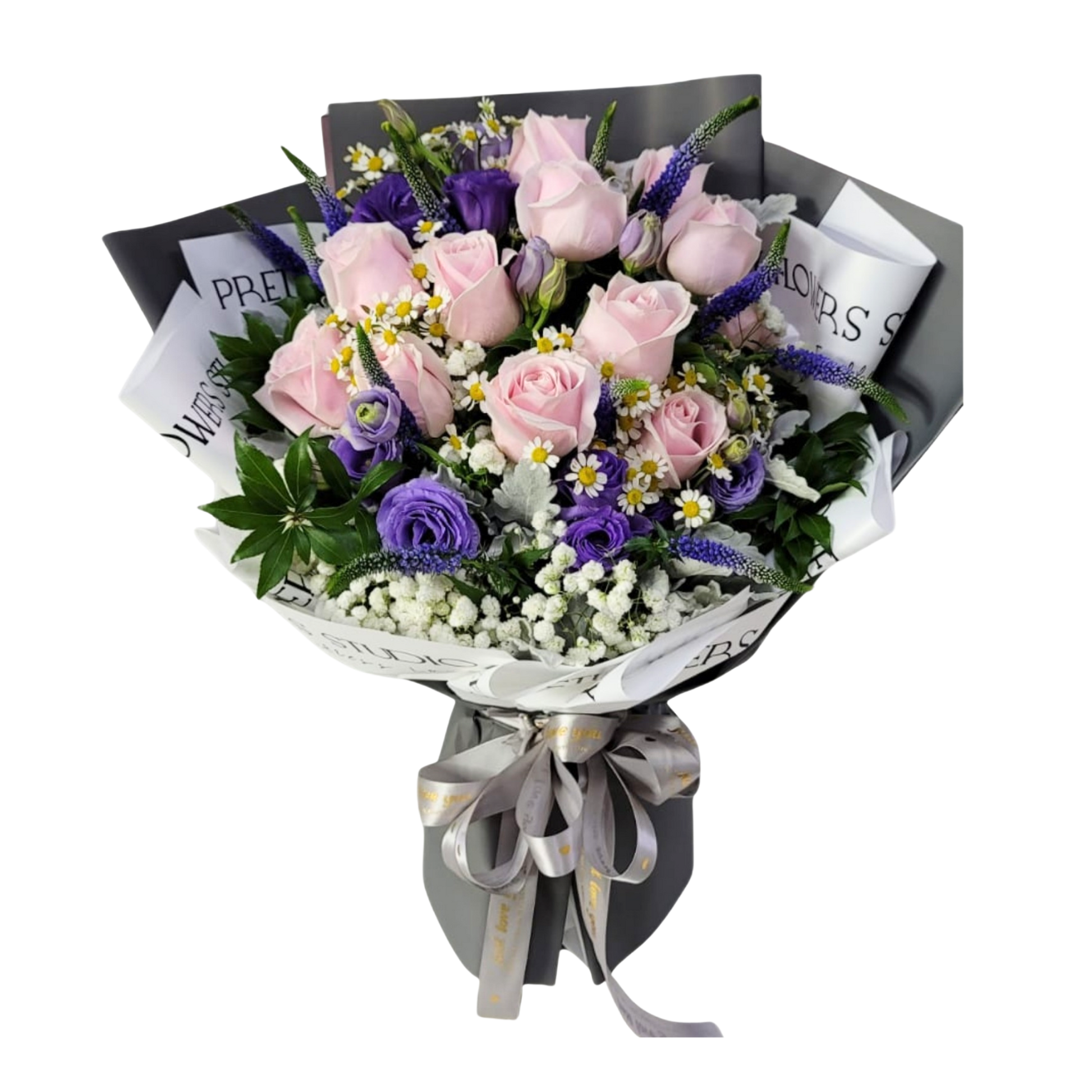 格蘭花店 - 鮮花花束 (玫瑰12枝、桔梗、滿天星、鼠尾草及其他襯花) [FB061]