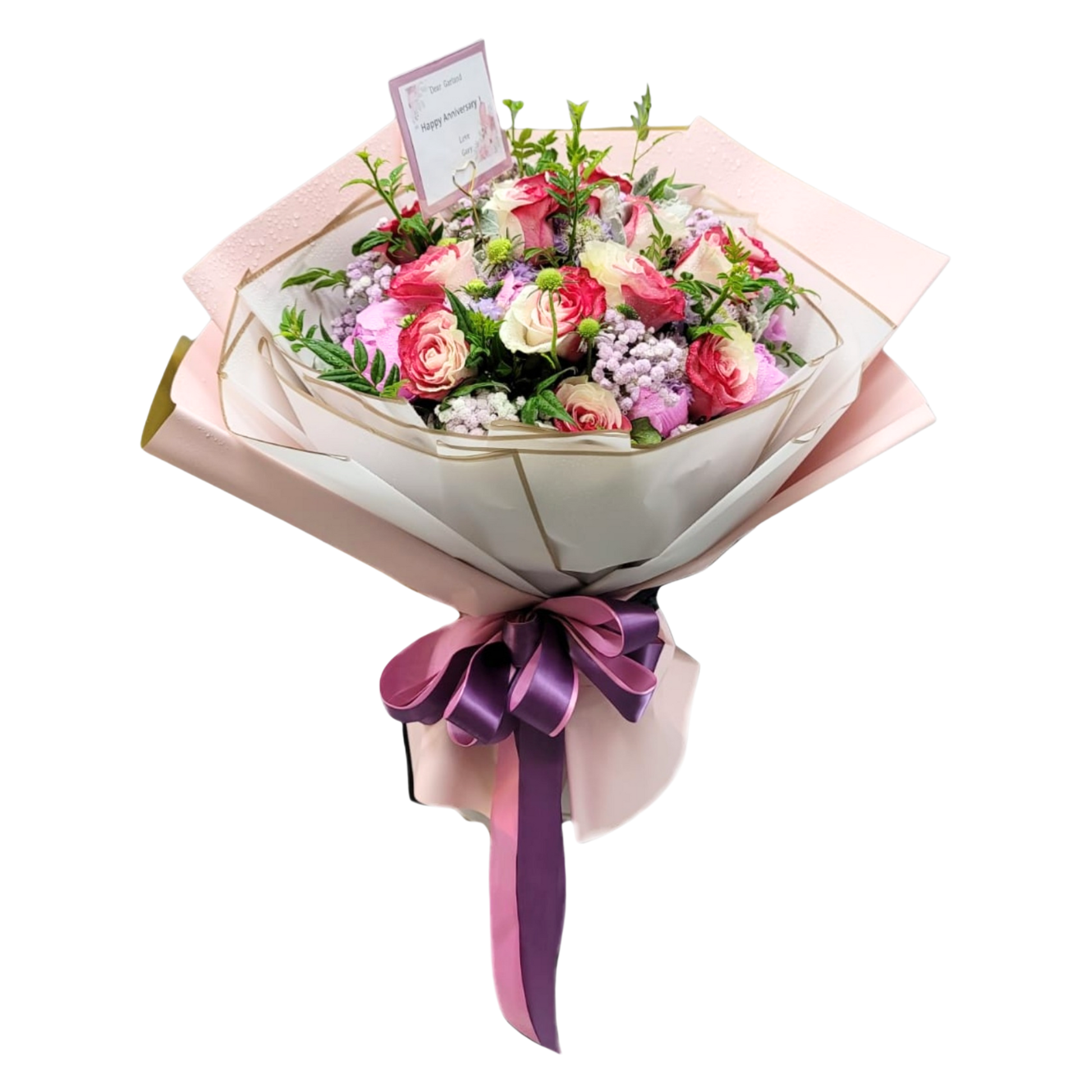 格蘭花店 - 鮮花花束 (南美玫瑰12枝、滿天星及其他襯花) [FB063]