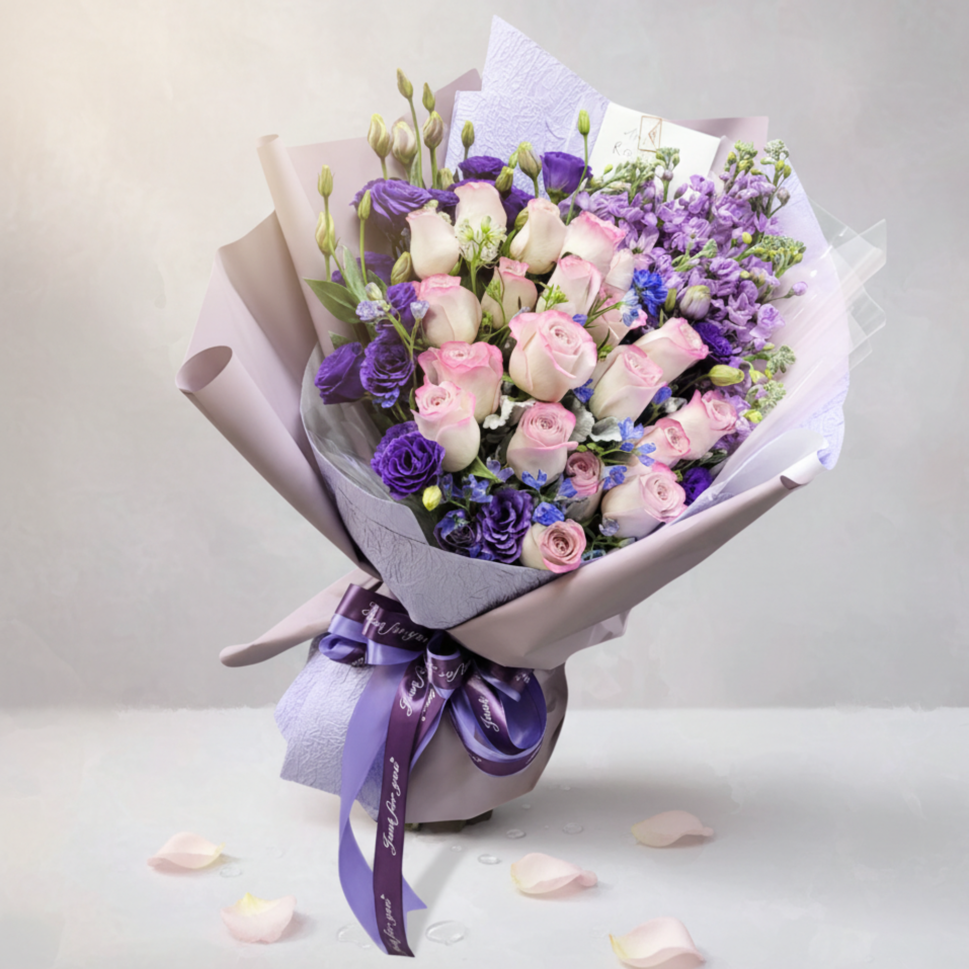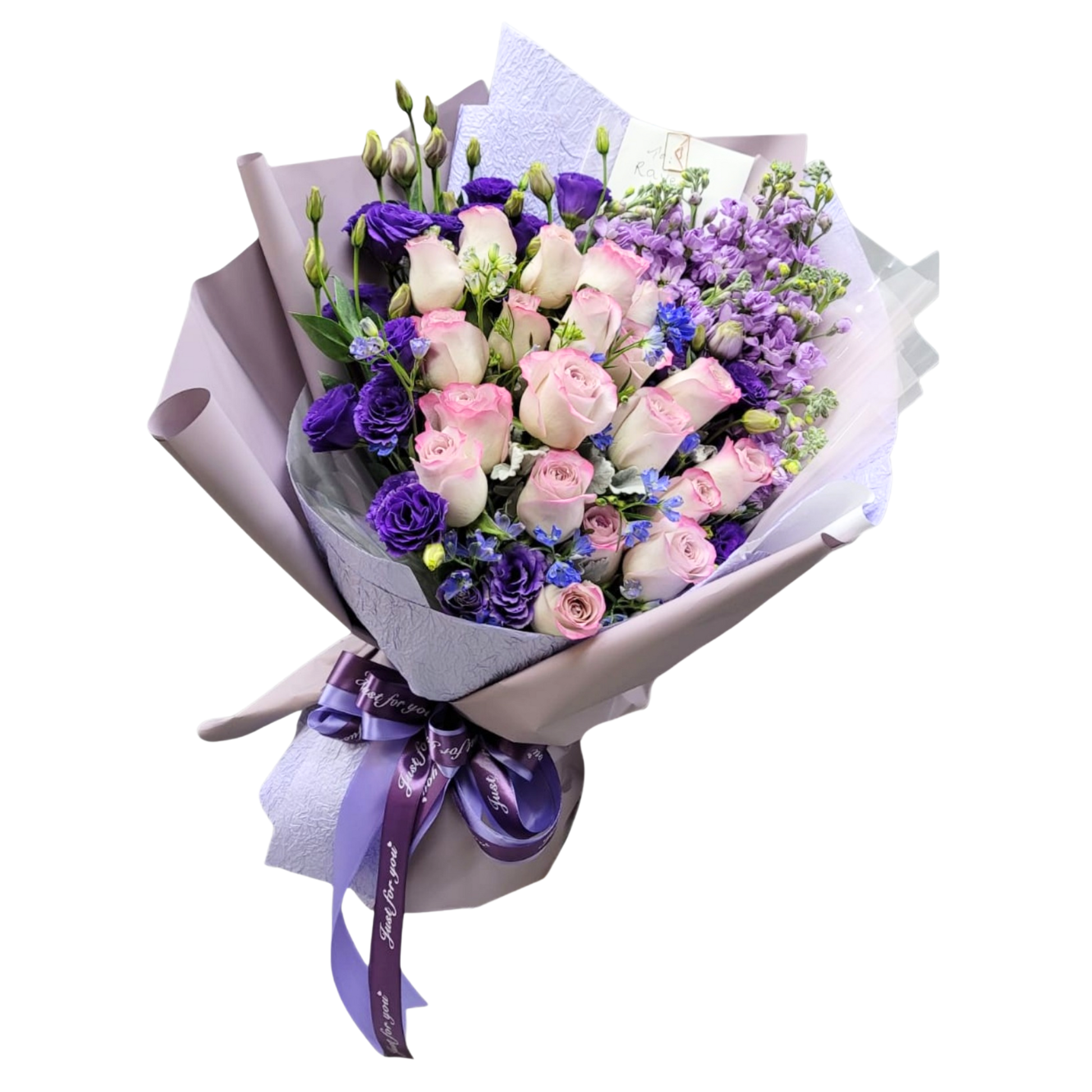 格蘭花店 - 鮮花花束 (玫瑰24枝、桔梗、小飛燕及其他襯花) [FB066]