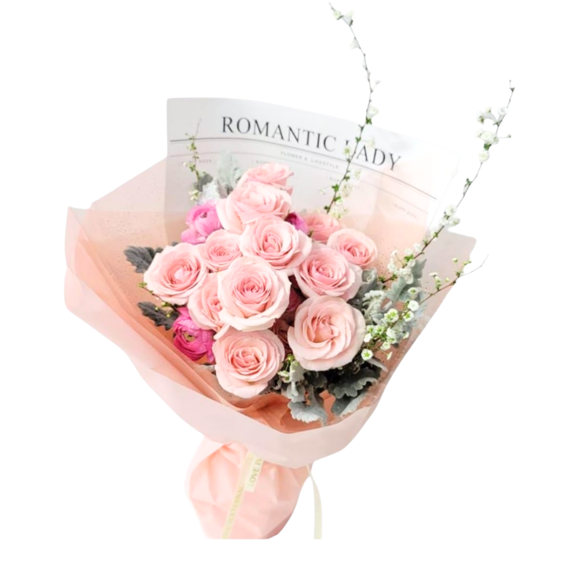 格蘭花店 - 鮮花花束 (玫瑰12枝、米娜葉及其他襯花) [FB080]