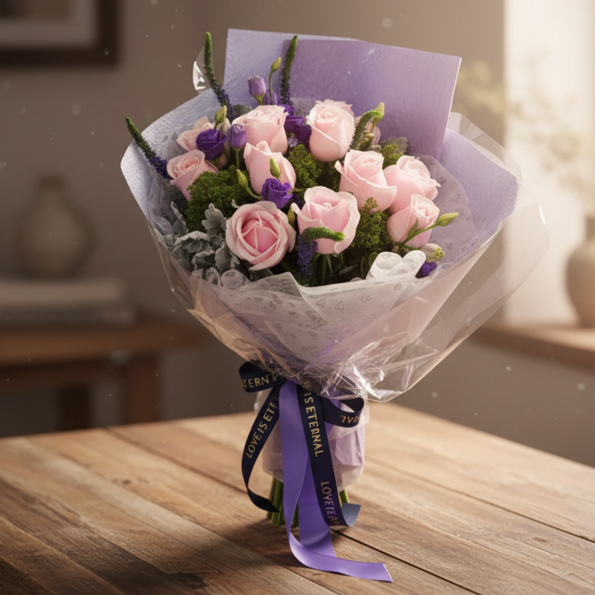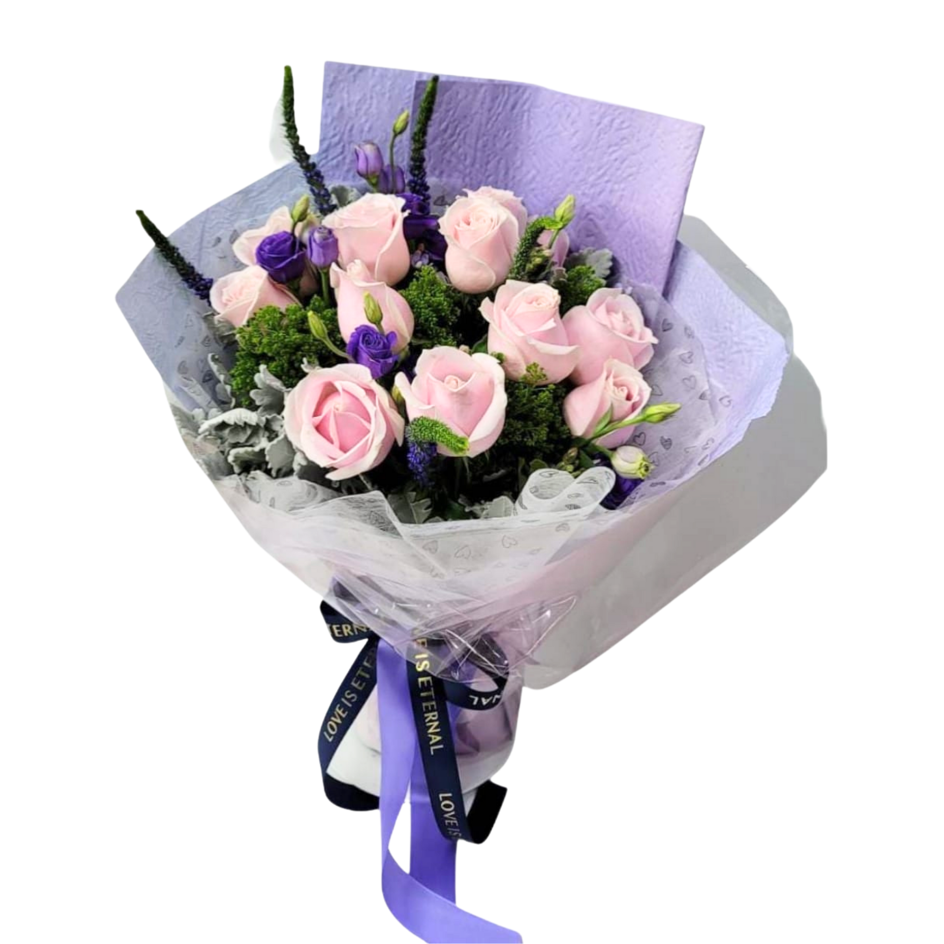 格蘭花店 - 鮮花花束 (粉玫瑰12枝、鼠尾草、桔梗及其他襯花) [FB081]