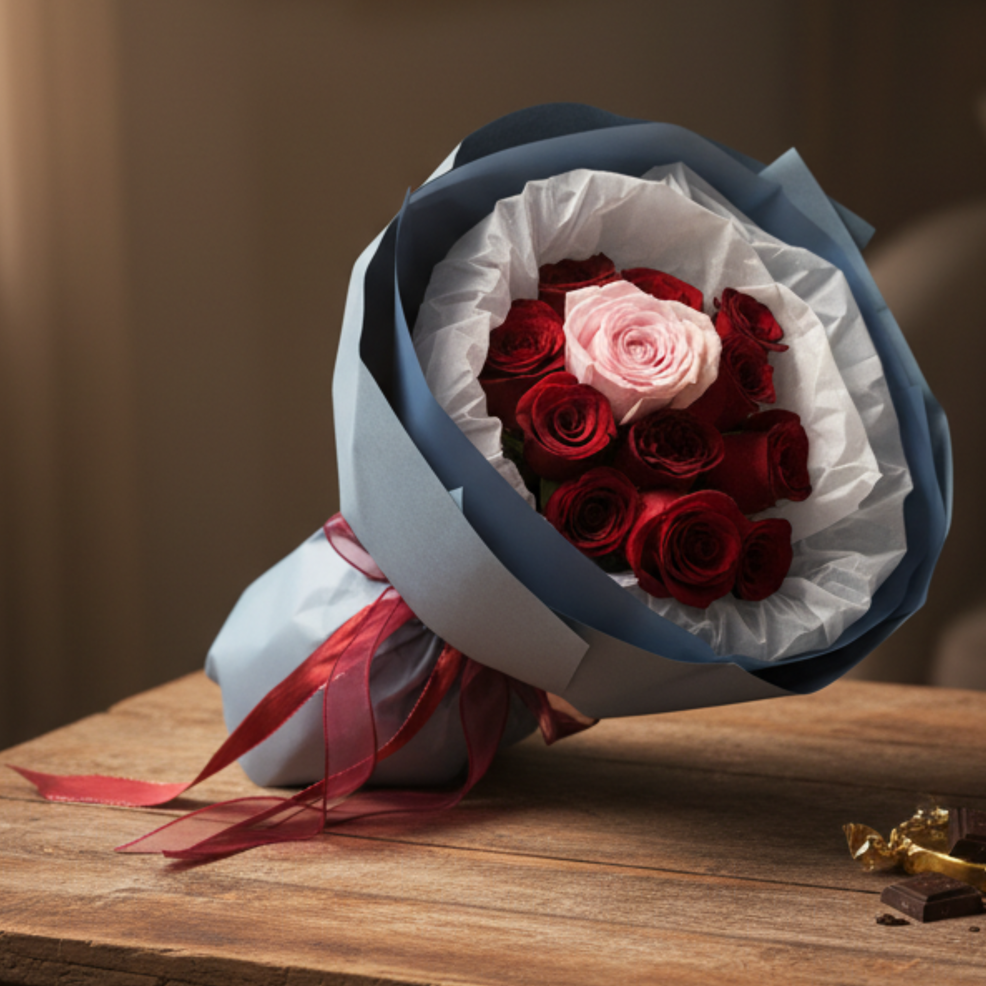 格蘭花店 - 鮮花花束 (紅玫瑰10枝、粉玫瑰1枝) [FB082]