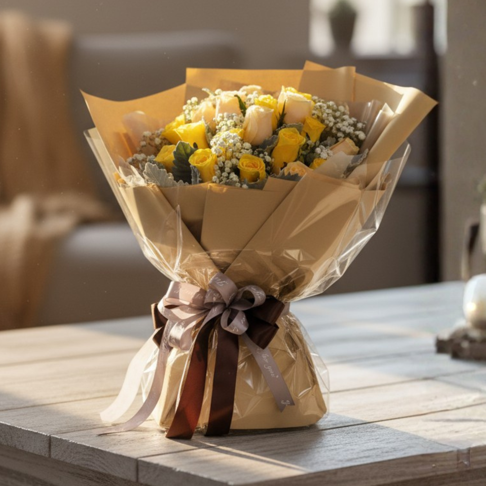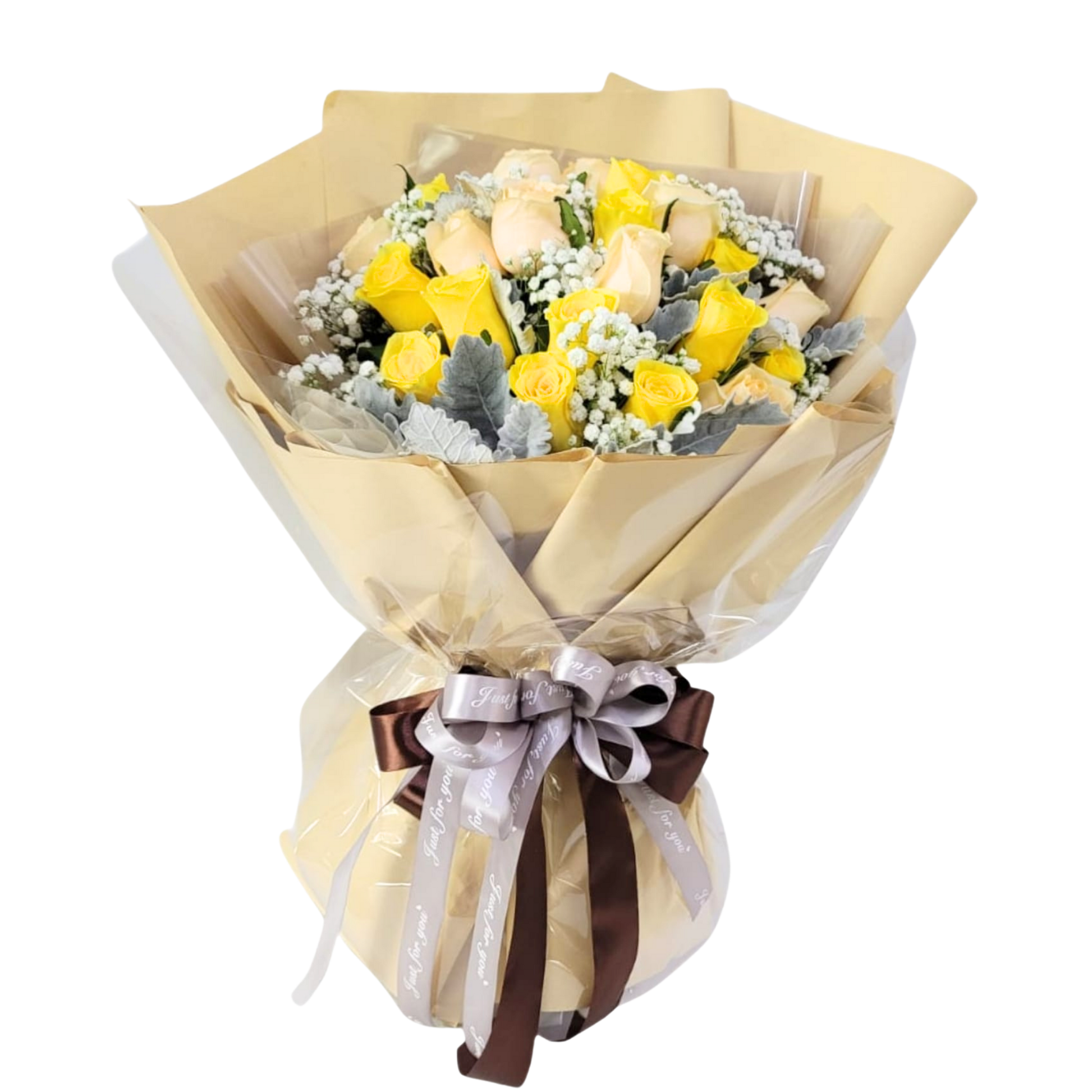 格蘭花店 - 鮮花花束 (黃玫瑰10枝、香檳玫瑰10枝、滿天星、米娜葉) [FB096]