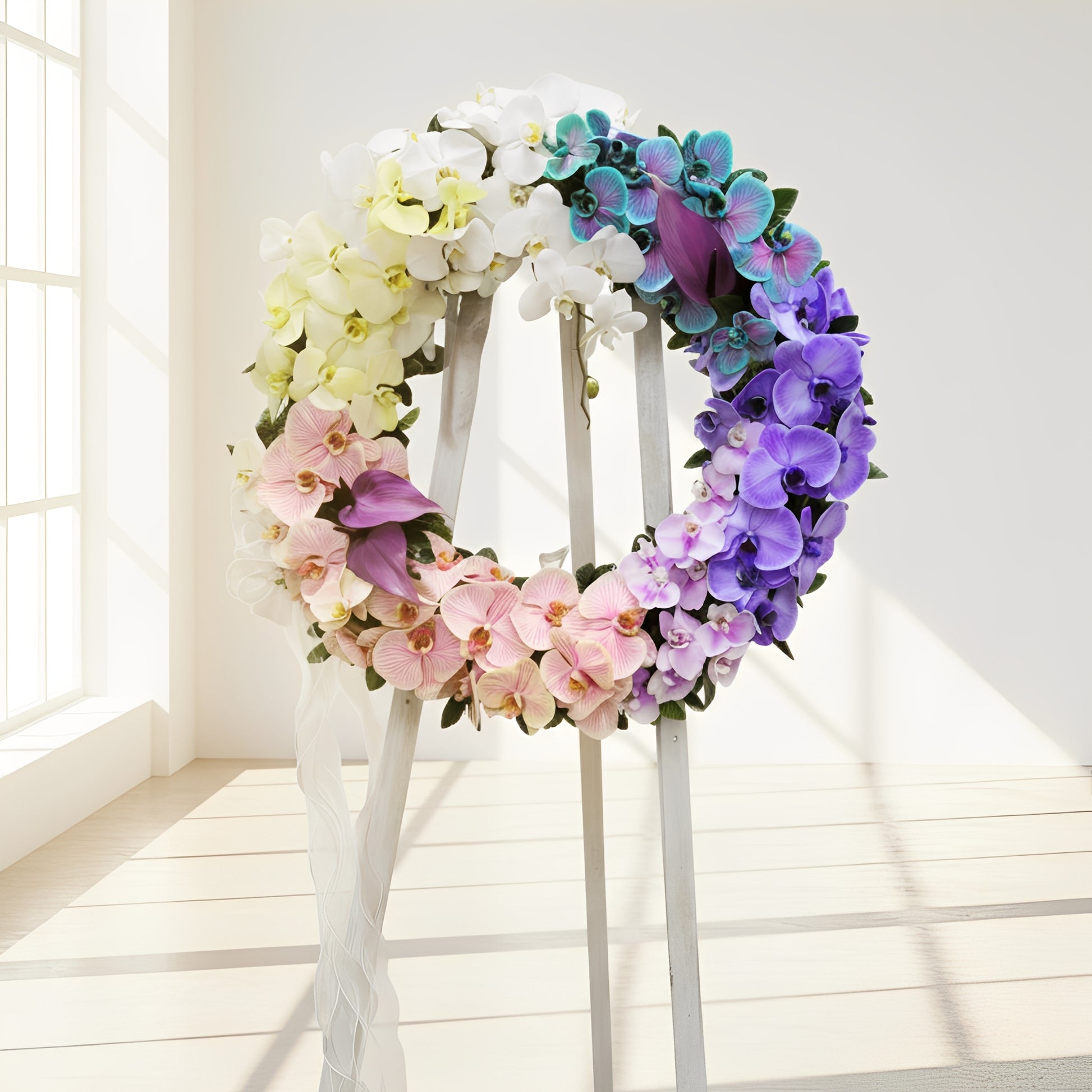 格蘭花店 - 白事花圈 (馬卡龍蝴蝶蘭及其他襯花) [FW026] 喪禮 殯儀 告別式 追思會