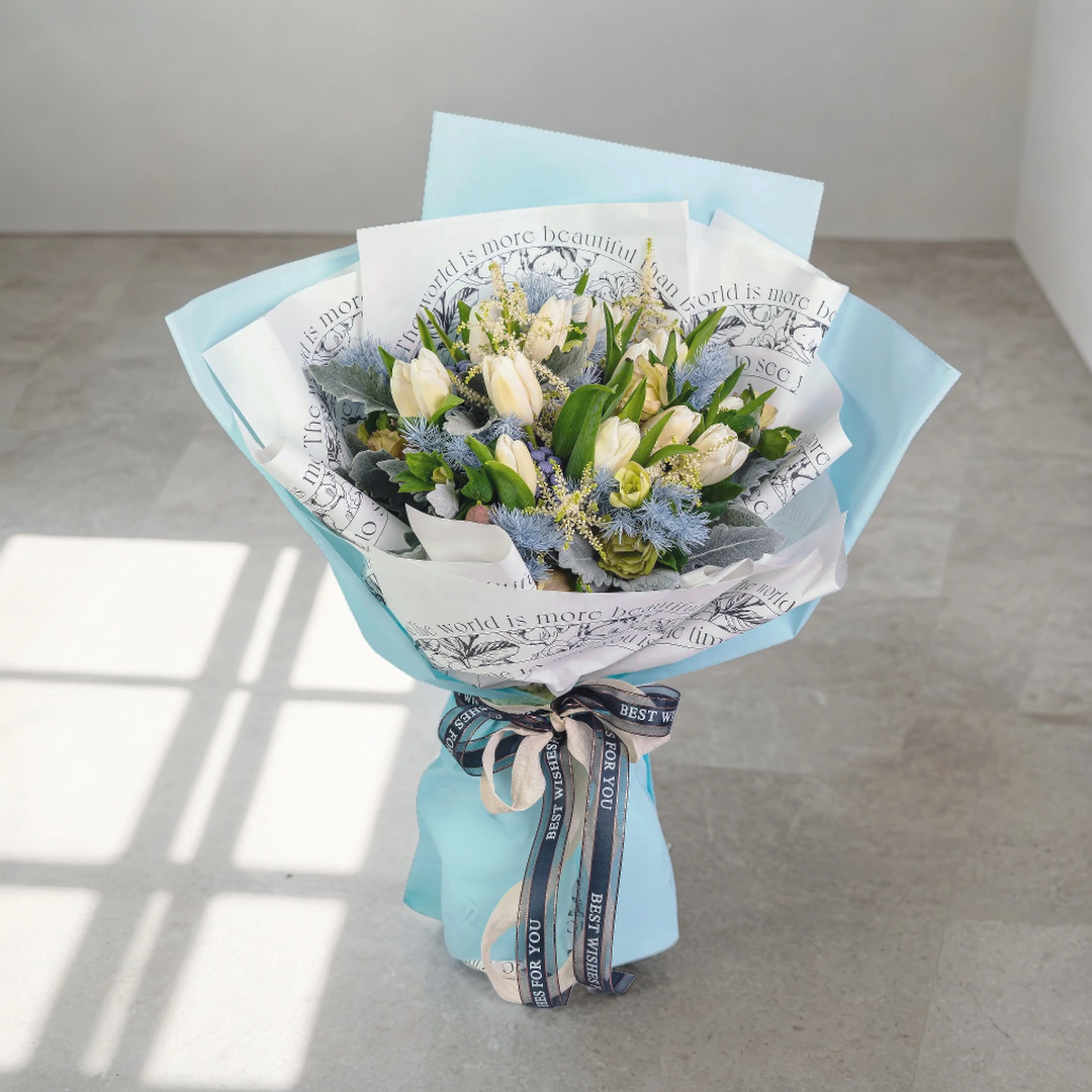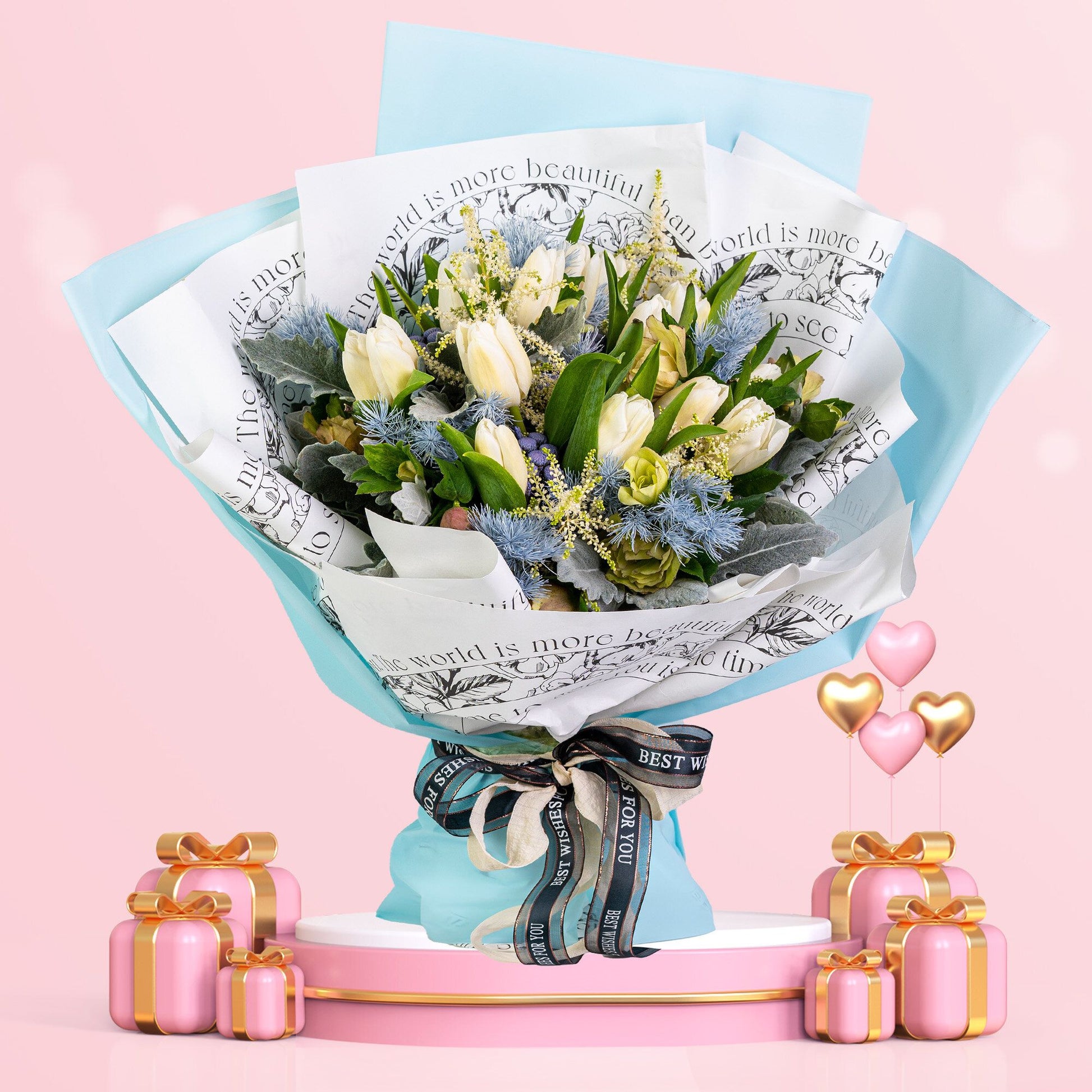 格蘭花店 - 鮮花花束 (鬱金香20枝+小百合、白雪、米娜葉及襯花) [GF00073]