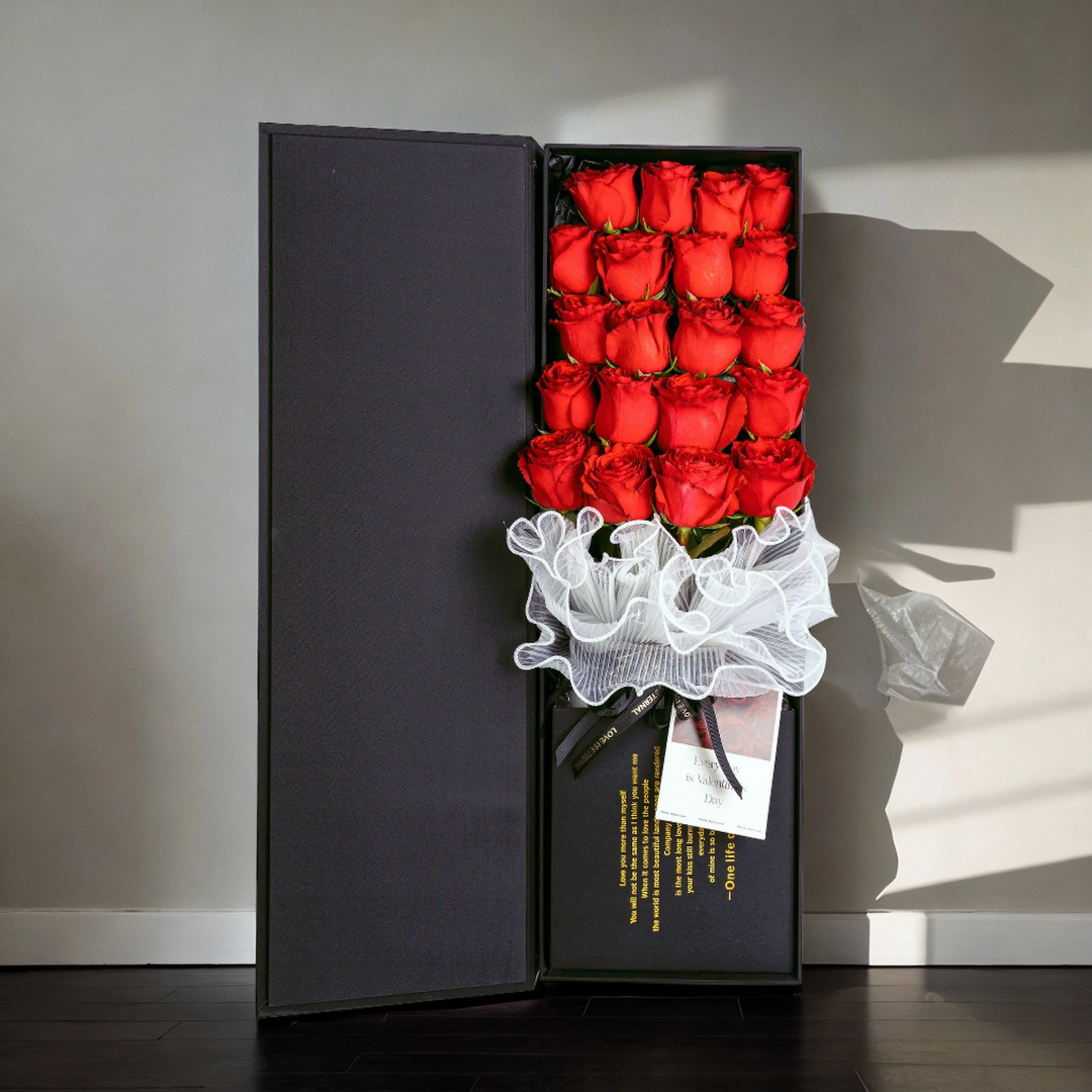 格蘭花店 - 長方形鮮花花盒 (A級紅玫瑰20枝,配襯高級禮盒) [GF00085]