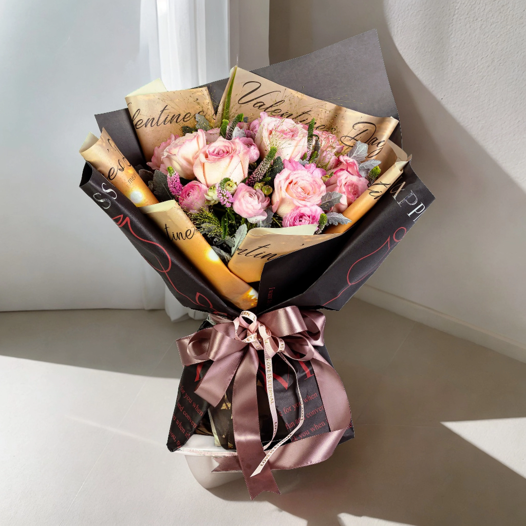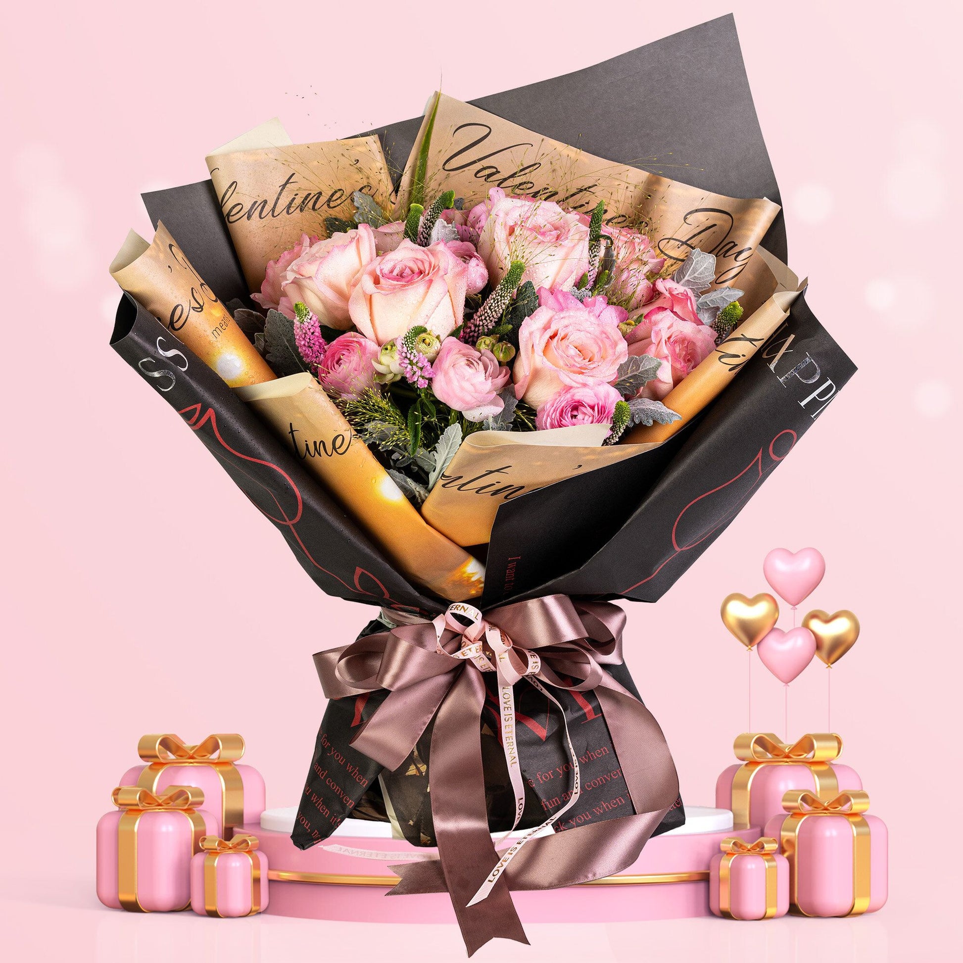 格蘭花店 - 鮮花花束 (厄瓜多爾A級玫瑰11枝+噴泉草、鼠尾、小牡丹、米娜葉及襯花) [GF00089]