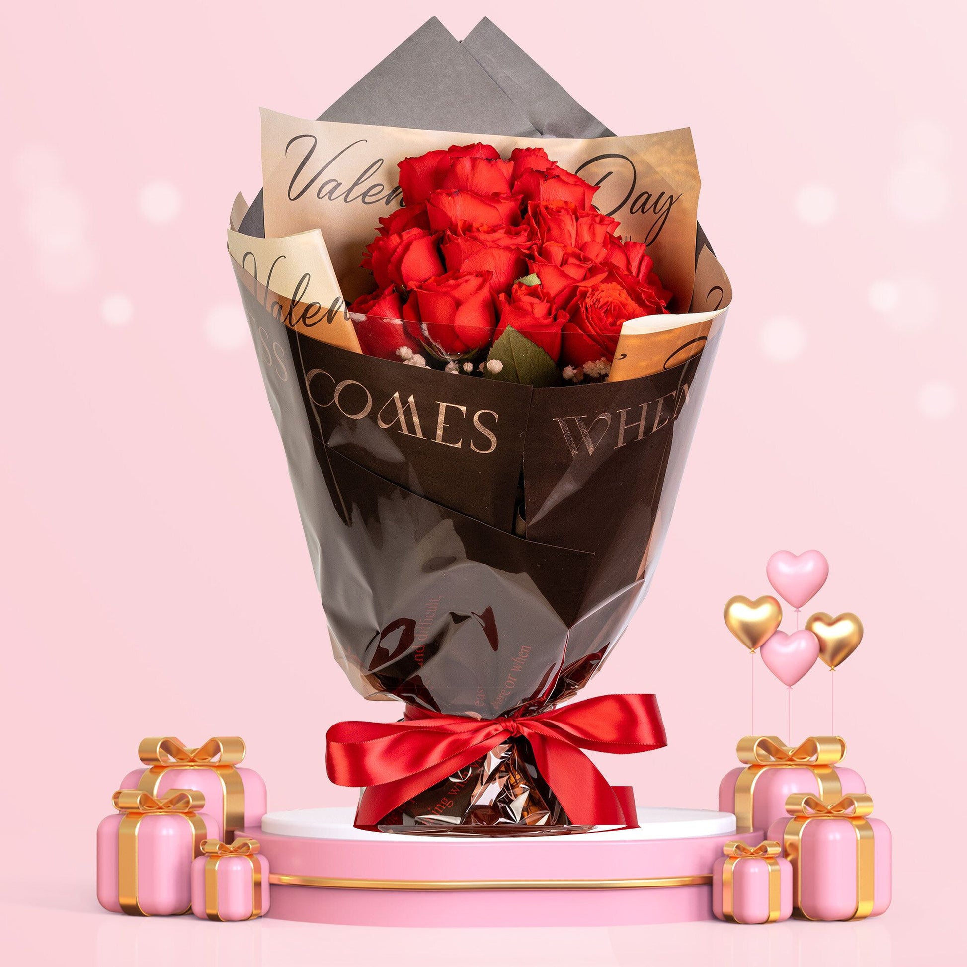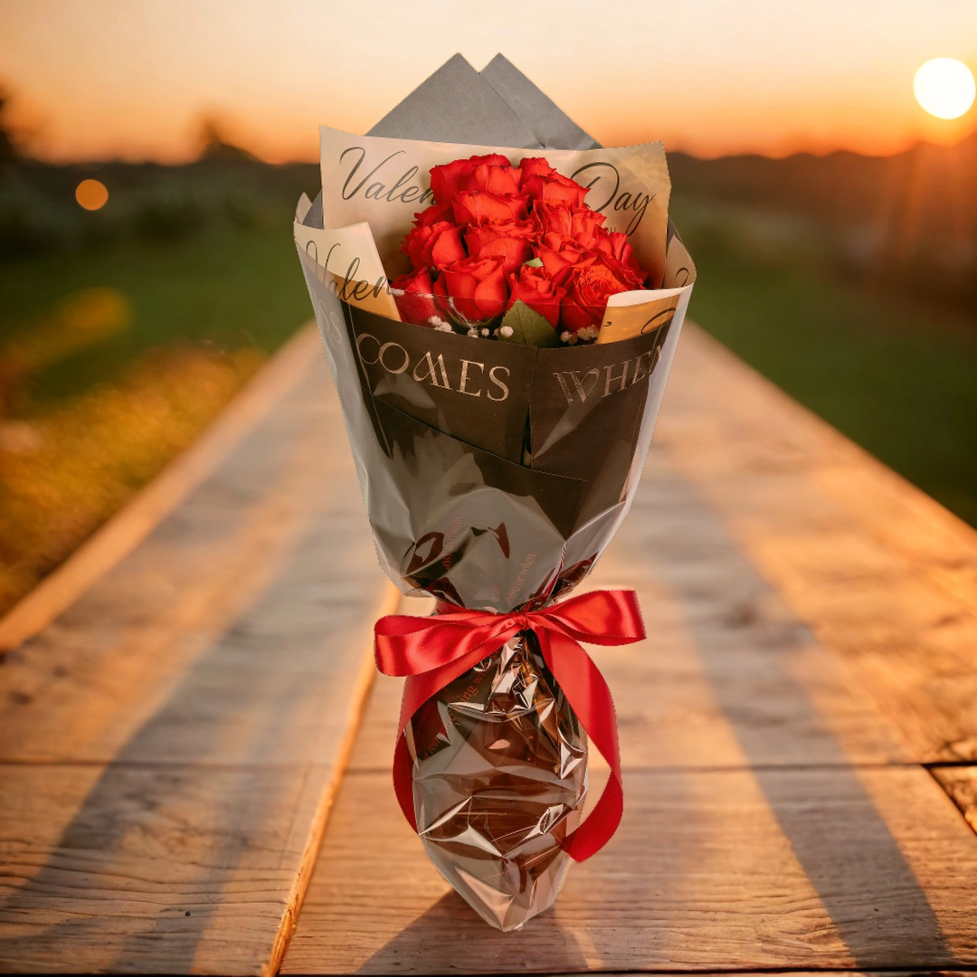 產品素材:紅玫瑰18枝+滿天星及襯花