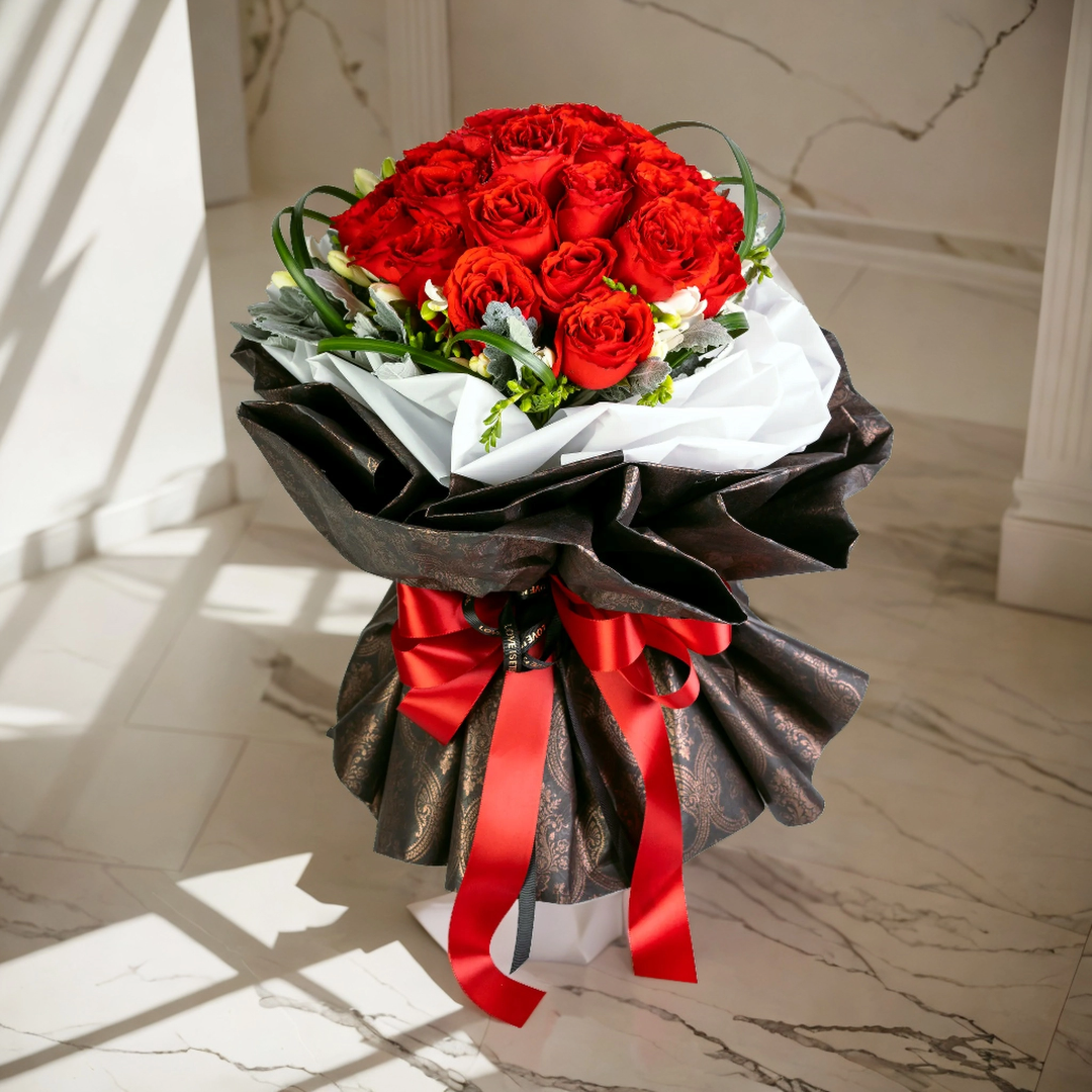 格蘭花店 - 鮮花花束 (紅玫瑰30枝+較剪蘭、春蘭葉、米娜葉及襯花) [GF00094]