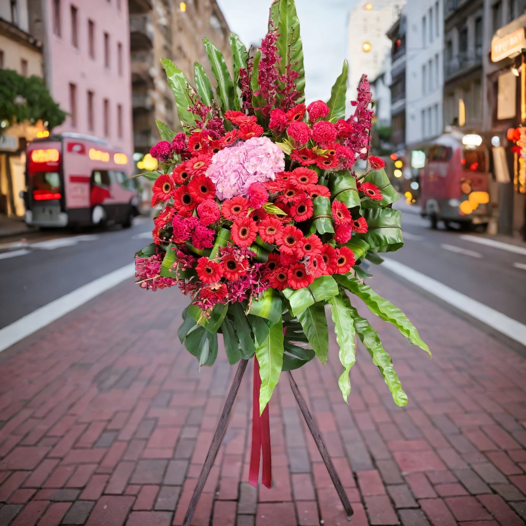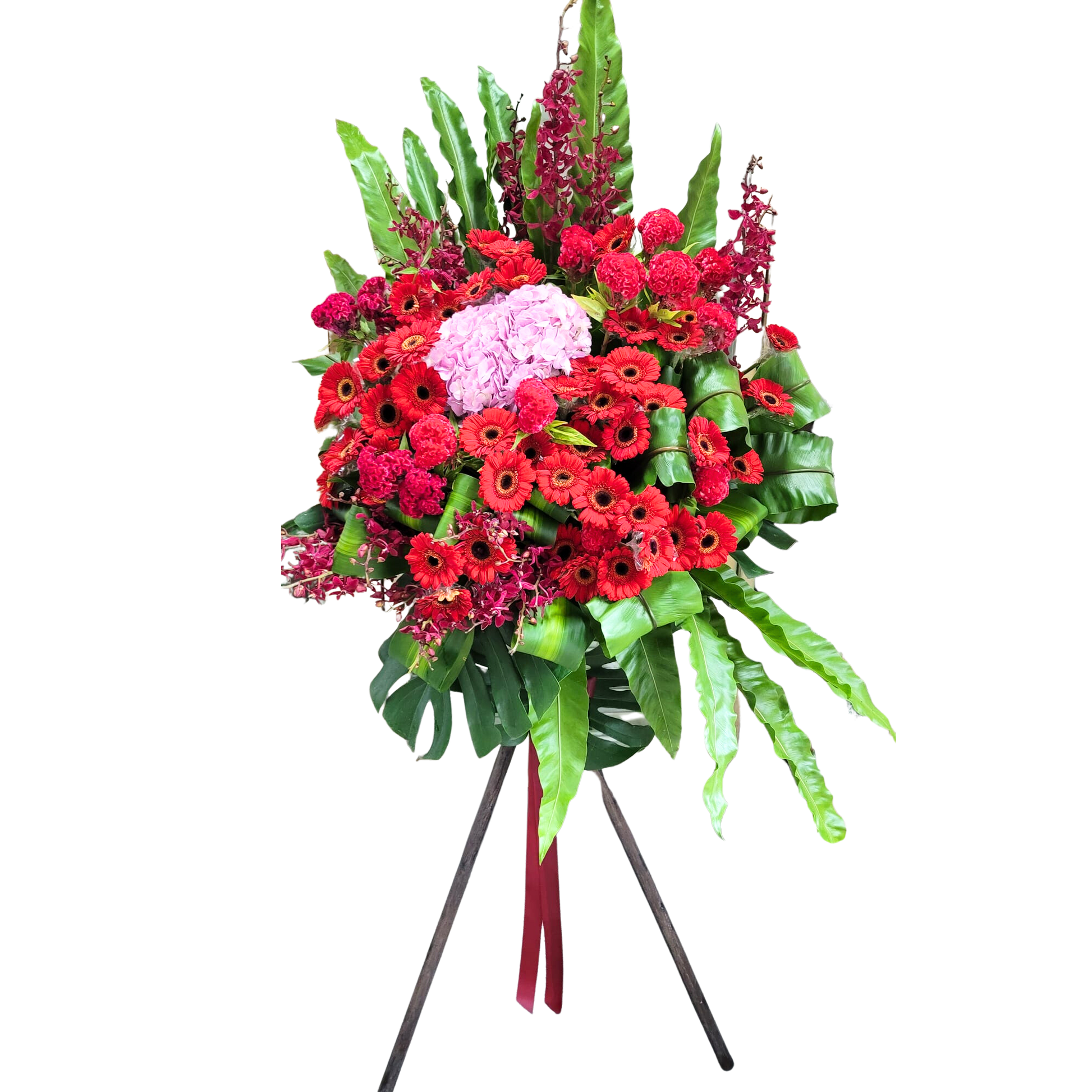 格蘭花店 - 開業大花籃 (6-7呎) (紅色太陽花、大粉繡球花、雞冠花等) [GF00188]