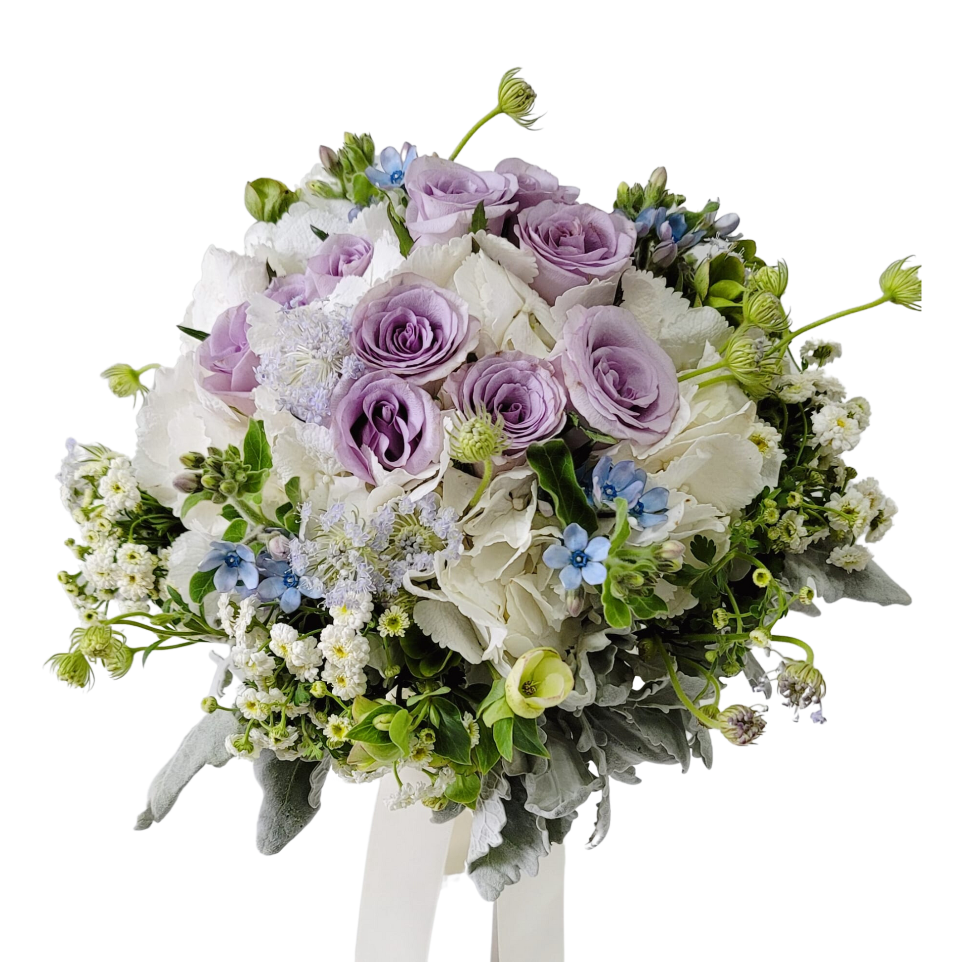 格蘭花店 - 法式結婚花球 / 新郎哥襟花花材 (紫色玫瑰花11支、白色繡球花、藍星花、聖誕玫瑰等) [GF00193]