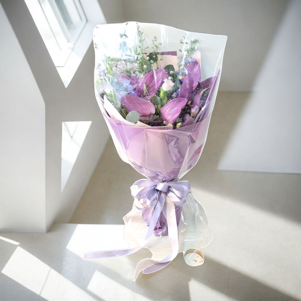 格蘭花店 - 鮮花花束 (大飛燕草5支、紫掌9支、風鈴草、藍星花、老鼠尾、紫桔梗) [GF00269]