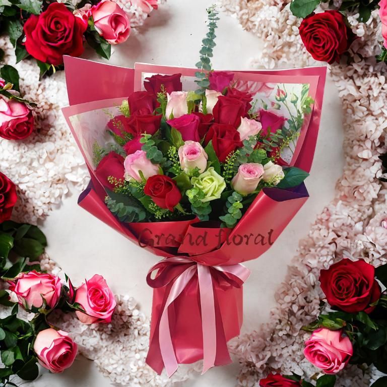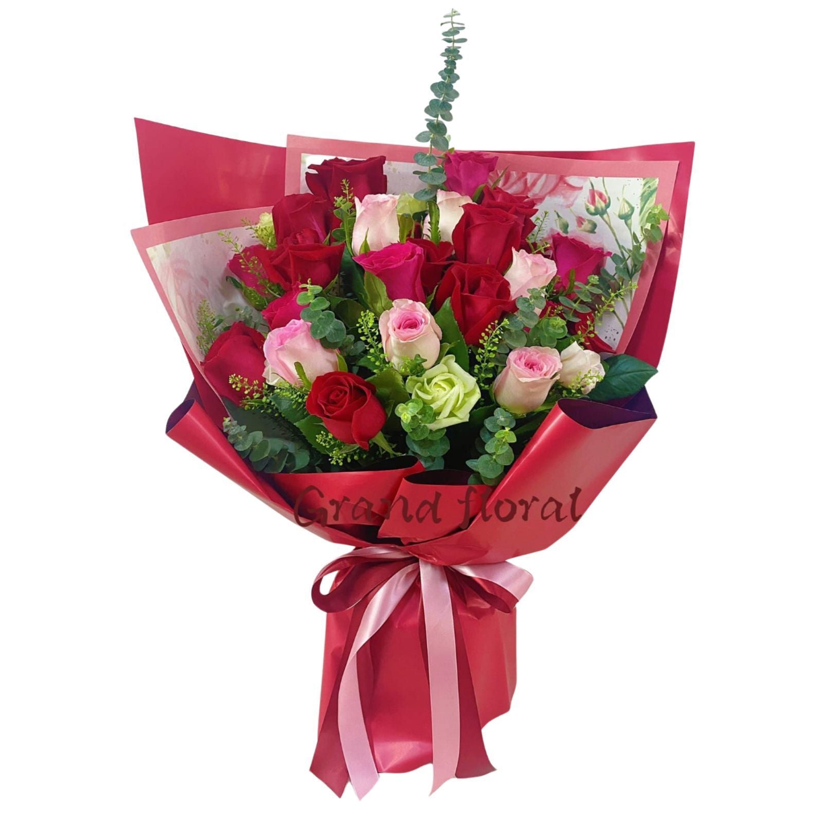 格蘭花店 - 心心相印 鮮花花束 (紅玫瑰和粉玫瑰共24支及其他襯花) [GF00327]