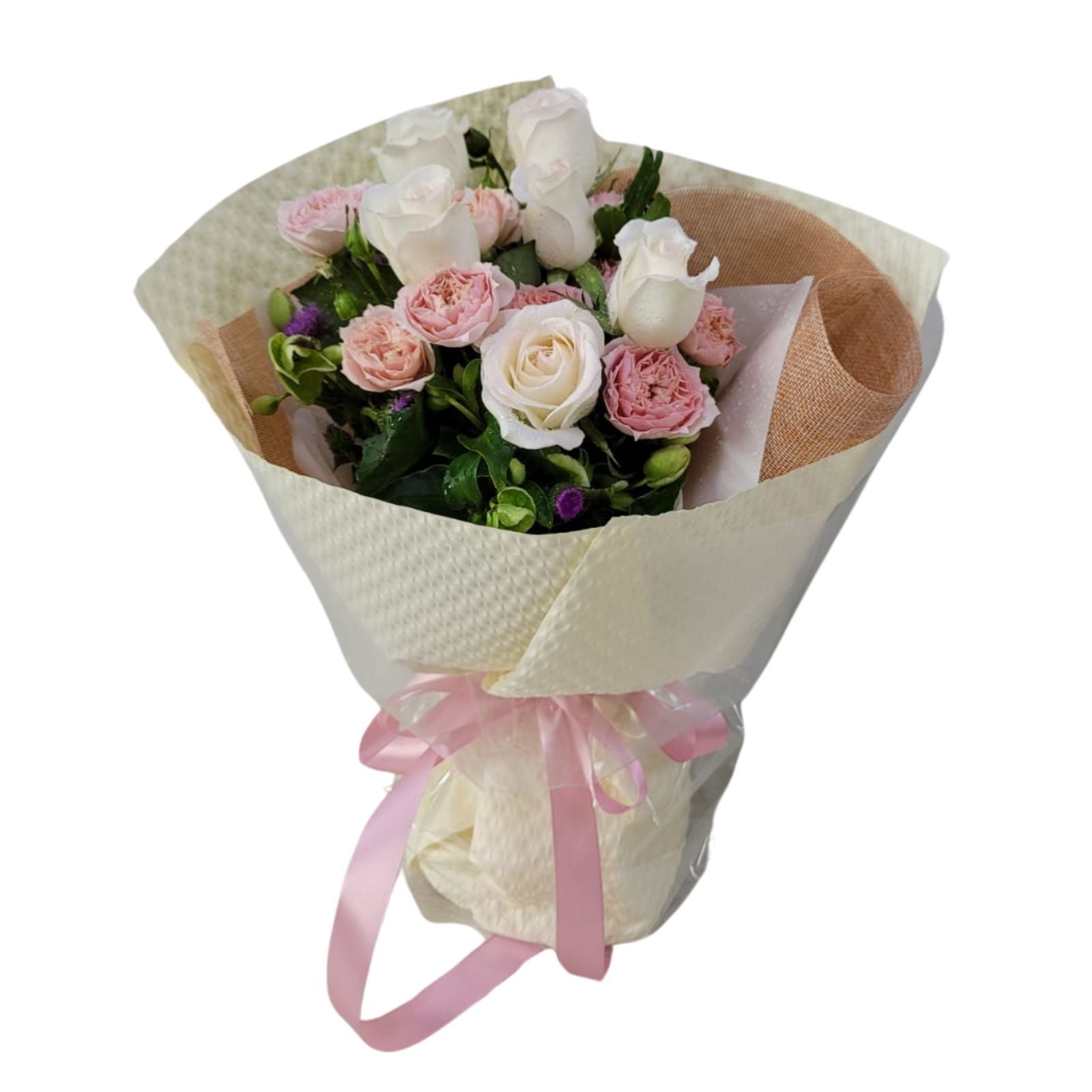 格蘭花店 - 編織的夢 鮮花花束 (白玫瑰6枝、粉色多頭小玫瑰3枝) [GF00329]