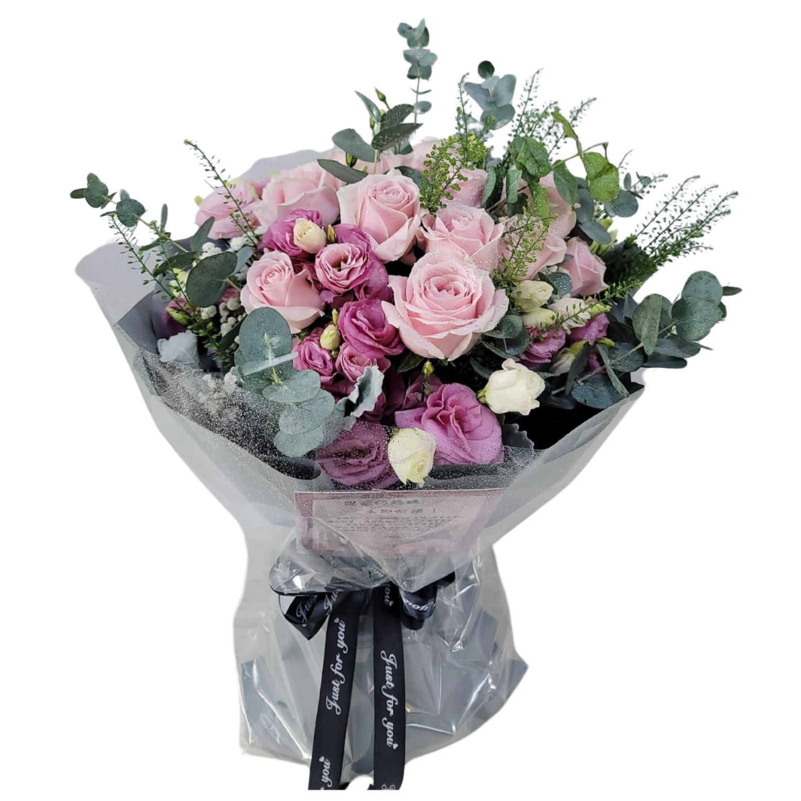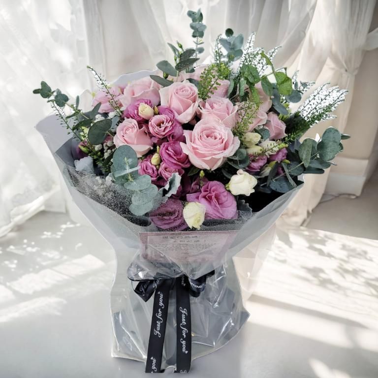 格蘭花店 - 你是我唯一 鮮花花束 (粉玫瑰11枝、桔梗、尤加利、BB草及其襯花) [GF00332]