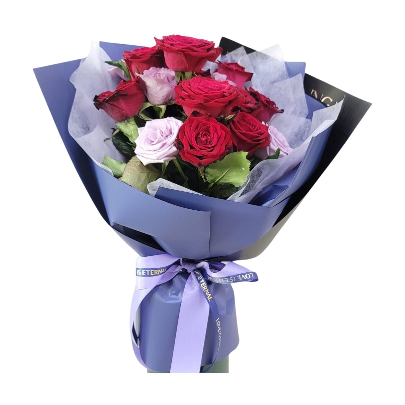 格蘭花店 - 萬千寵愛 鮮花花束 (紅玫瑰9支、紫玫瑰3枝及其襯花) [GF00334]