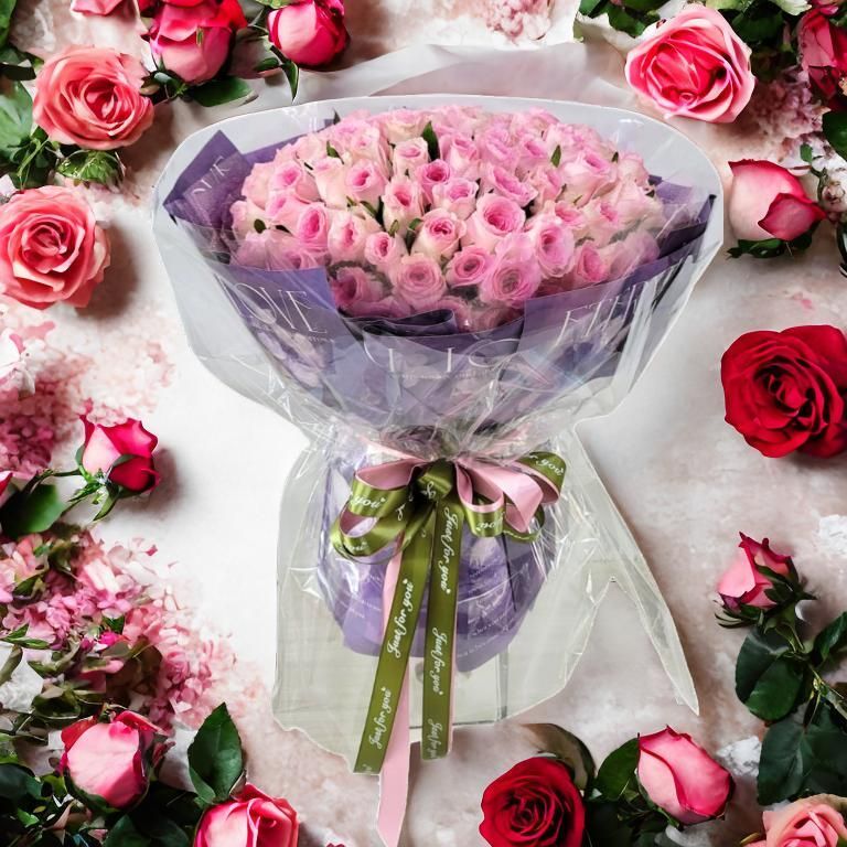 格蘭花店 - 天長地久 鮮花花束 (玫瑰99支及其他襯花) [GF00339]